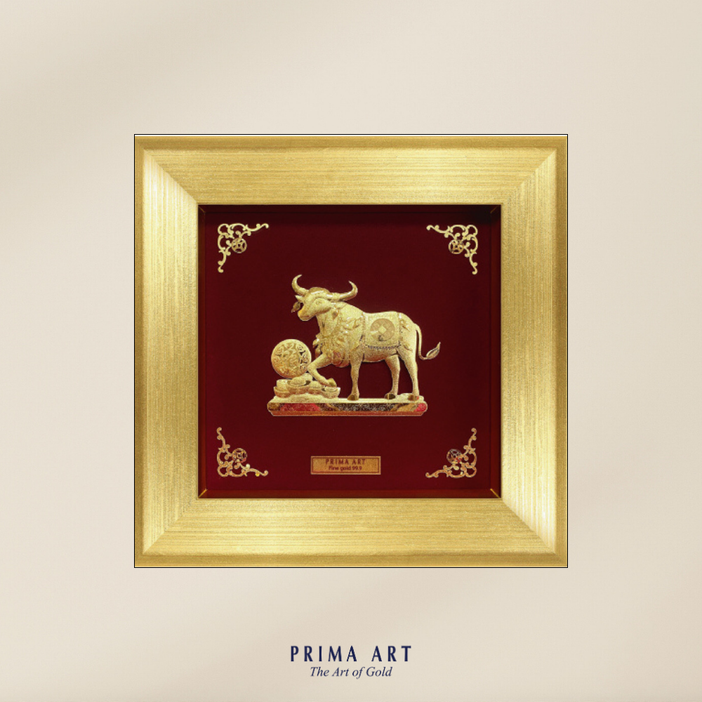 Tranh hình con Trâu và đồng tiền vàng khung vàng