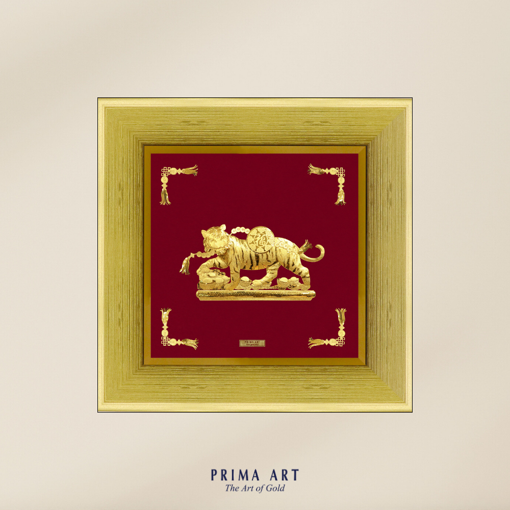 The Tiger of Wealth, walking on a pile of treasure, symbolizes power, courage, and prosperity. This majestic piece captures the fierce determination of the tiger, representing the pursuit of wealth and success. Perfect for any space, it brings an aura of strength and the promise of abundant fortune into your life.
