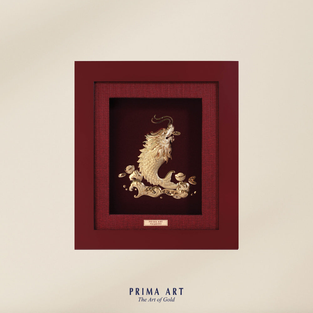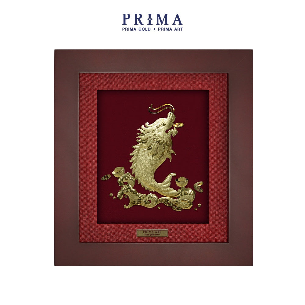 Hình ảnh loài cá chép bé nhỏ sống dưới nước, sau khi vượt qua được Vũ Long Môn với vây, đuôi, râu, sừng mọc đủ, oai phong rạng rỡ, không chỉ tượng trưng cho sự chuyển mình mạnh mẽ mà còn mang ý nghĩa về sự an lành, sung túc và thịnh vượng trong cuộc sống. Đặc biệt, tác phẩm còn gửi gắm mong ước về tài lộc dồi dào trong kinh doanh và thành công vang dội trong học hành, thi cử, là món quà ý nghĩa cho những ai đang nỗ lực vươn tới thành công.