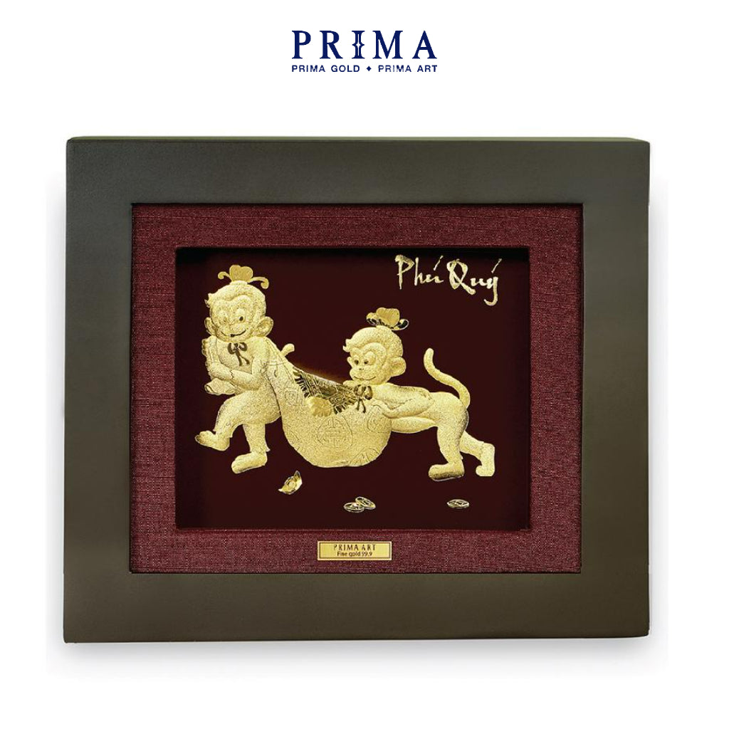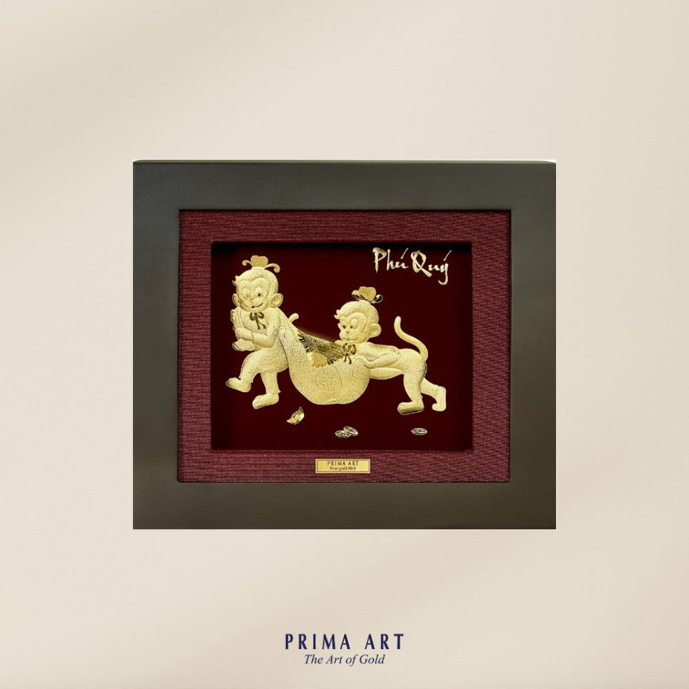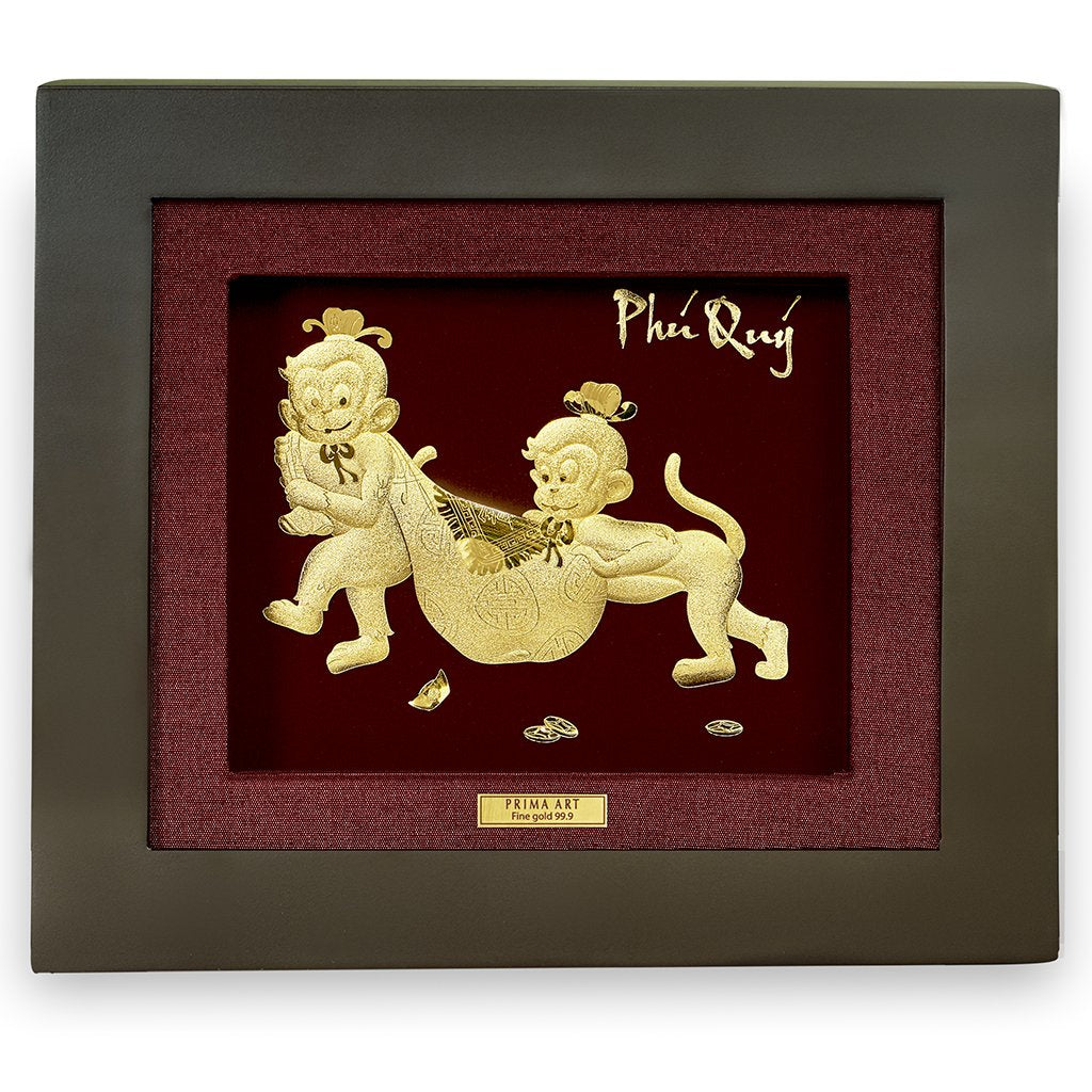 Tranh “Khỉ Vui Vẻ” được chế tác bằng nguyên liệu Vàng 24K Thụy Sĩ. Chất vàng 24K được mo vuốt khéo léo kết hợp đánh bóng, nhám tạo khối cho tổng thể tranh sắc nét và sinh động.